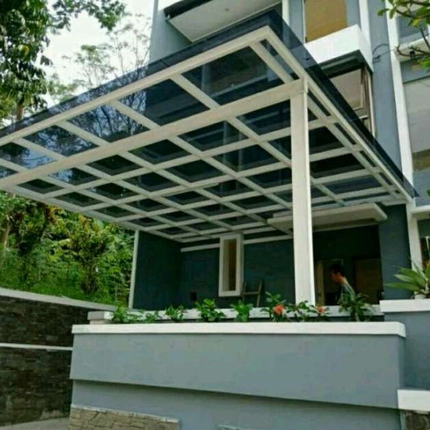 Model / Bahan Kanopi kaca dengan model bahan anti panas, es, laminated, polycarbonate, klasik, modern, dll pilihan lengkap.